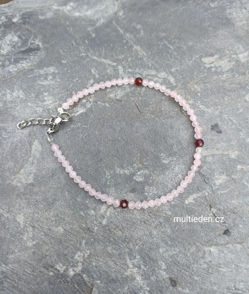 - Fasetovany Granát a Růženín 2 mm, náramek na ruku.