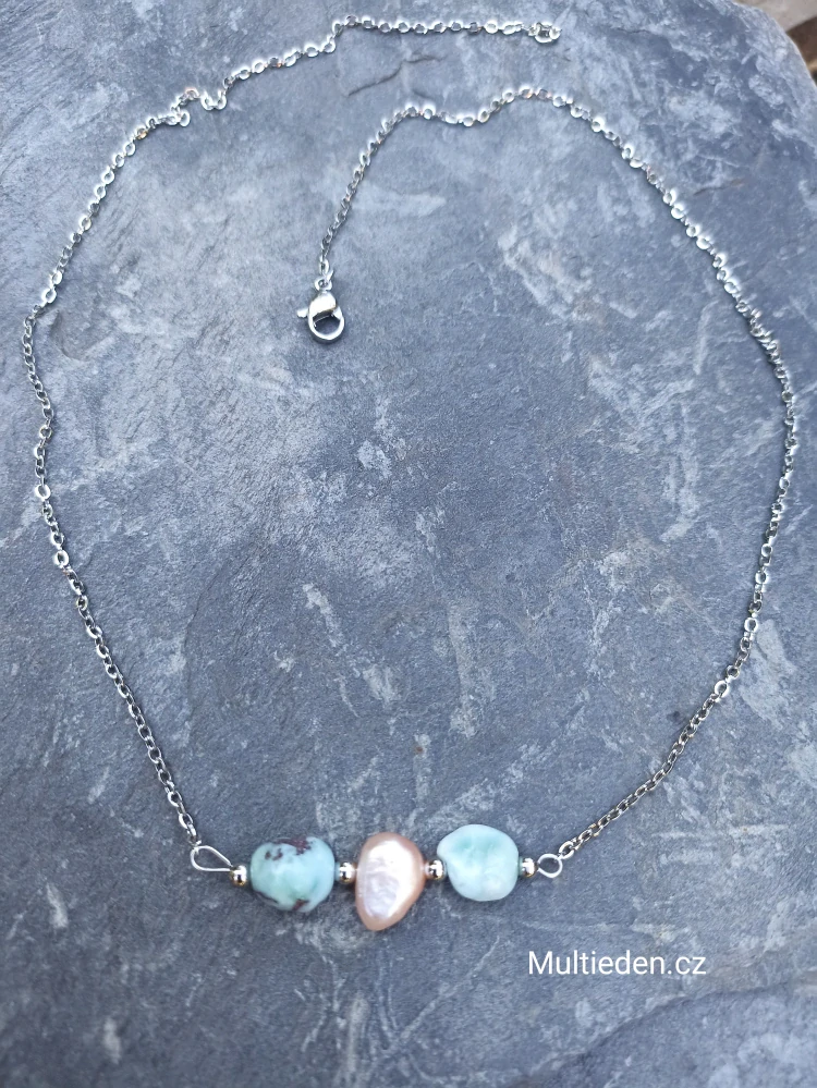 - Larimar a říční Perla, náhrdelník č:1.