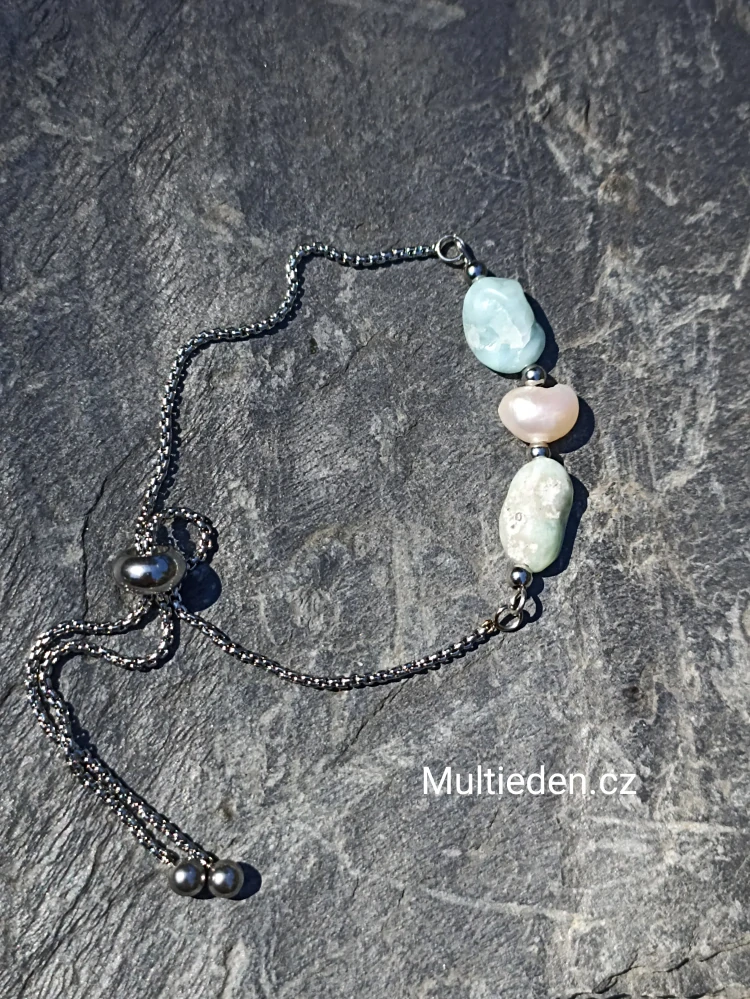 - Larimar a říční Perla, náramek na ruku univerzální . č: 2