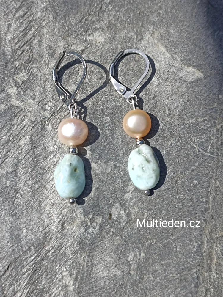 Larimar a říční Perla, náušnice č:2Skladem200 Kč/ ks
