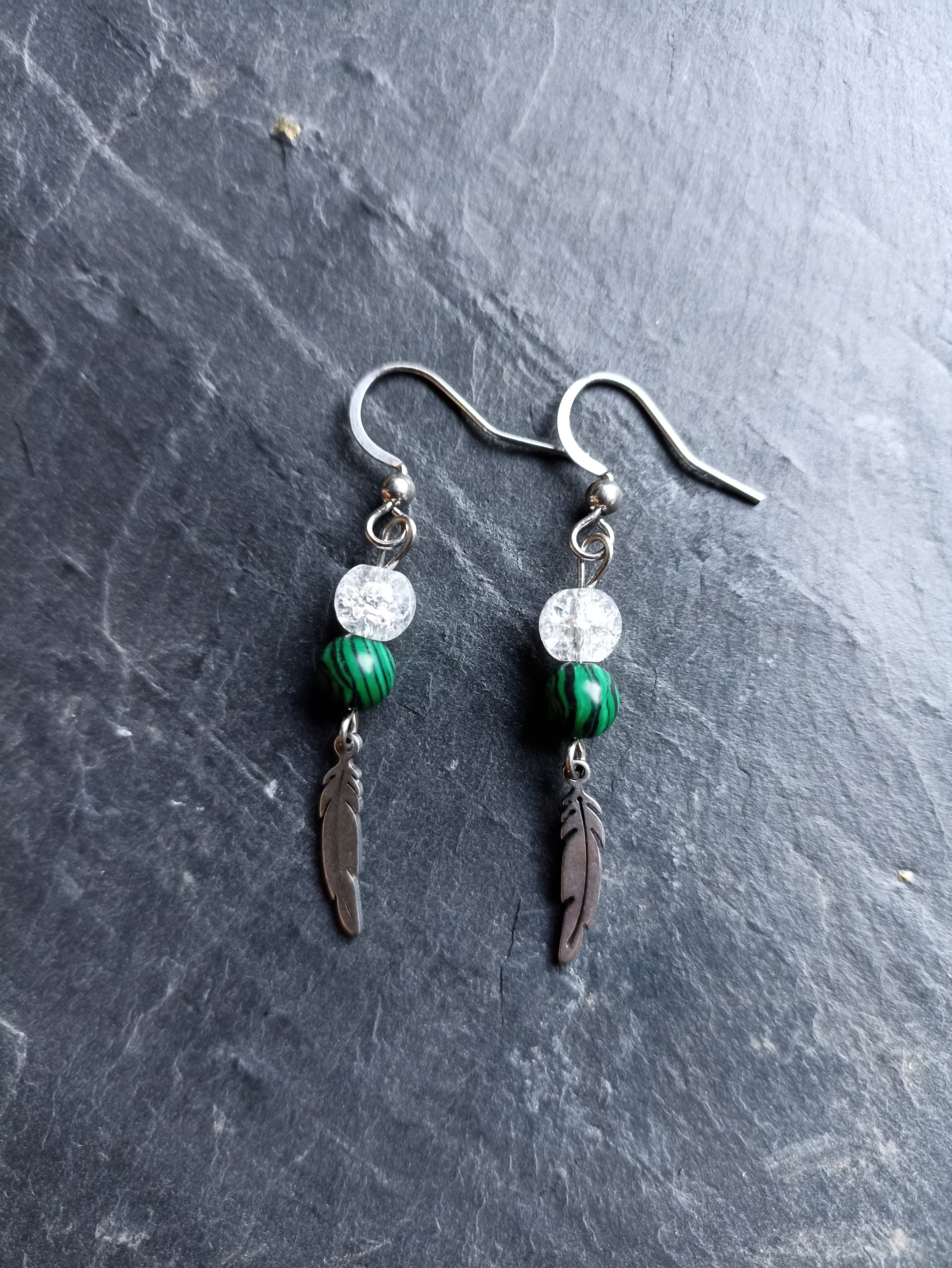- Náušnice z chirurgické oceli Andělské pírko s minerály