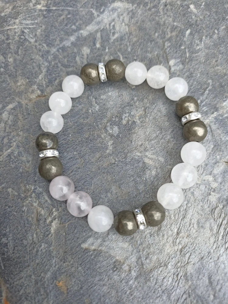 - Pyrit s křišťálem náramek na ruku.