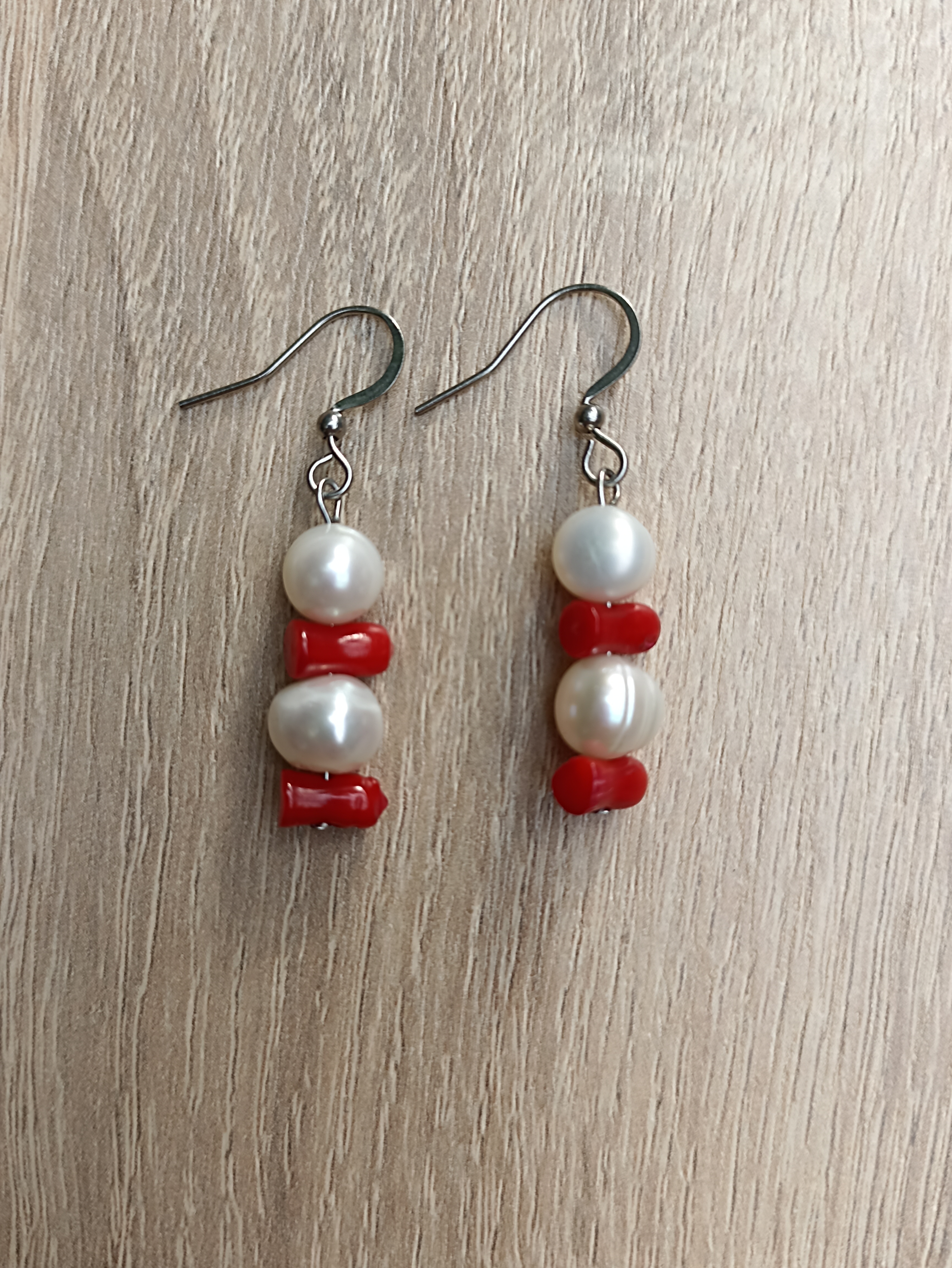 Originální náušnice z Říčních perel a červeného Korálu.